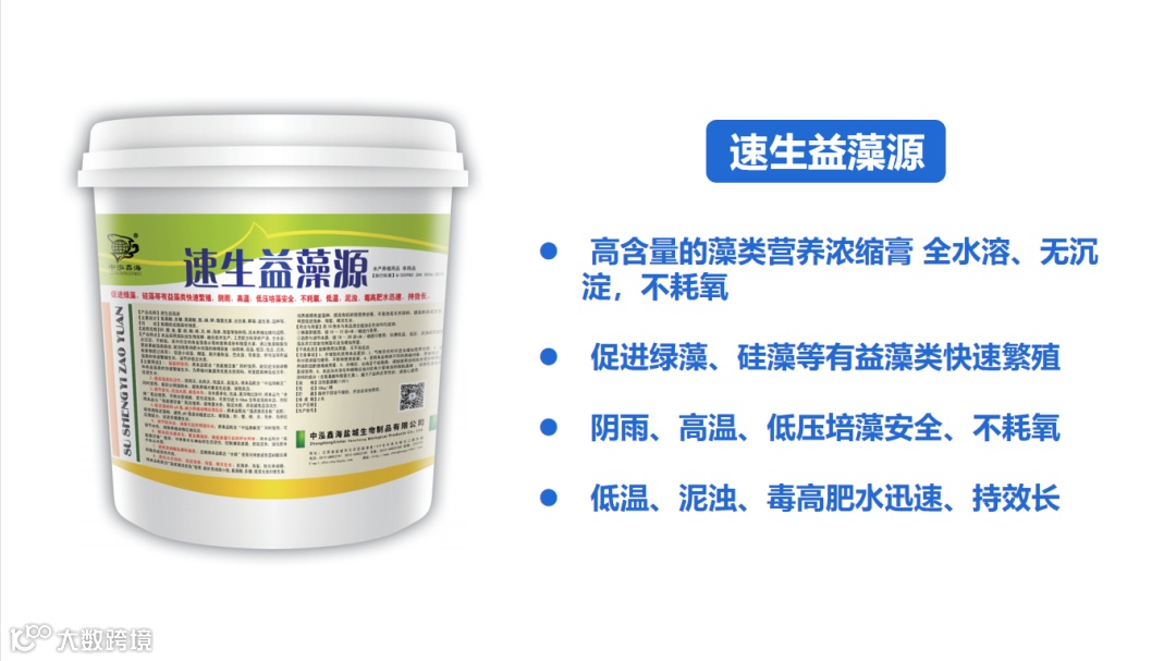对策:勿盲目使用物理吸附类产品;先用“高铁红”净化塘底,增加水体的通透性,接着使用“芽孢纯粉”+“速生益藻源”+“藻源激活多肽”分解有机质,转化为藻类生长源,促进藻类生长,促进亚硝酸盐转化。