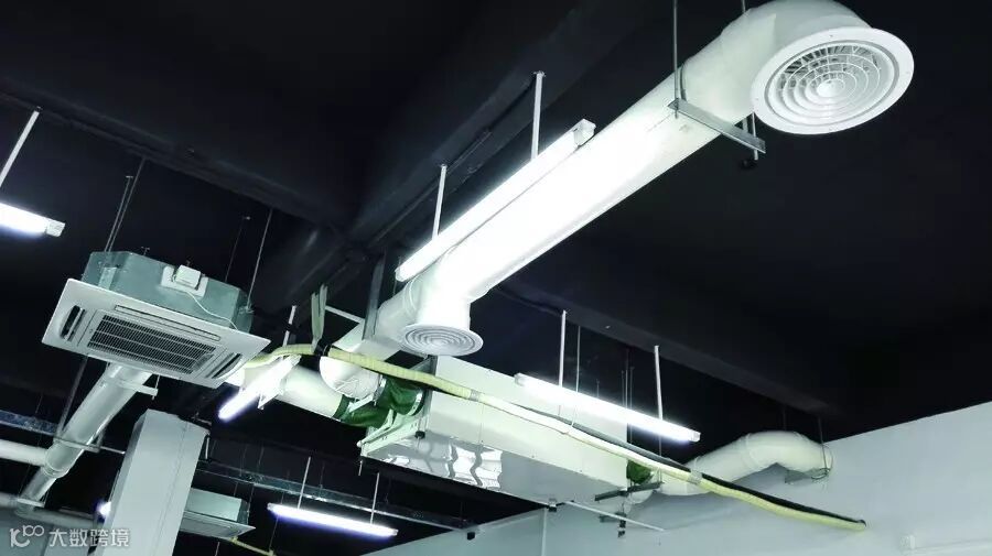 主机安装在办公室靠近窗户的位置,通过管道将新鲜空气输送到各个区域(采用从墙体打孔及悬梁的方式),为了使新风机的运行声音更低,采用帆布软接,安装在送风端、回风端,可降低机器振动及防止噪声,并可对因温度变化引起的热胀冷缩起到补偿作用。