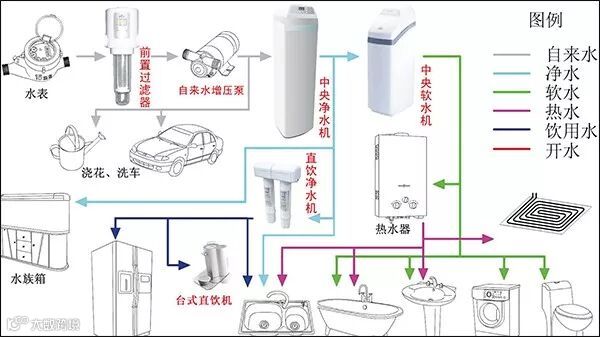 全屋净水设备通常包括三个子系统: