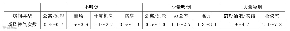 注:对于特殊行业,如医院(手术室、特护病房)、实验室、工业车间,按该行业相关规范条例确定所需新风量。