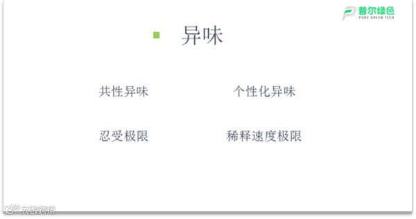 第四类污染物是异味。异味,大家也很熟悉,我们早上睡醒了之后出了卧室再回去的时候,就感觉房间味道很重。为什么房间里那么臭?冰箱里放了坏的东西,为什么打开冰箱很臭?这叫共性的异味。目前我们的高端业主从共性异味已经开始向个性化异味上去发展了。起初是吸烟,男业主吸烟,女业主不喜欢男业主吸烟。女业主喷香水,男业主不喜欢女业主喷香水。那么我们对异味有忍受极限,他们要求装上新风,就是保证屋里不能有异味,那么你要考虑的是通过多长时间把这个异味排出去达到他们能忍受的极限。到现在,变成了稀释速度的极限,也就是说业主先抽完烟十分钟之后你不能让家人闻这个烟味儿。这就是我们高端业主在异味上一些独特的要求。