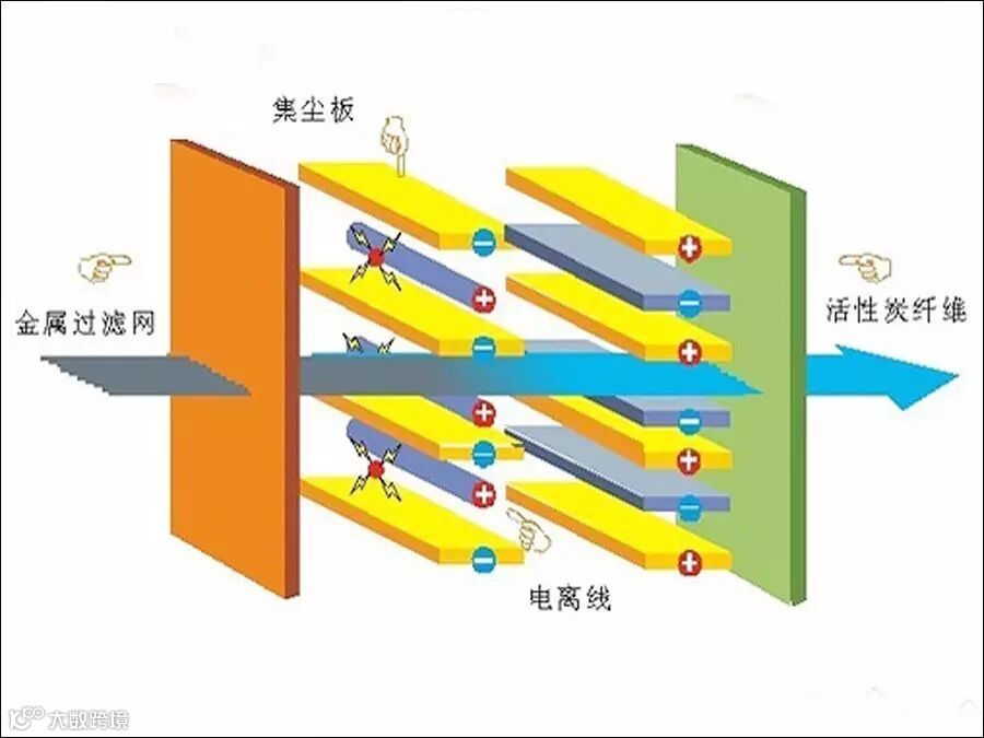 净化原理:高压强电场的作用,颗粒物吸附在负极板或者正极板,异种电荷相互吸引。