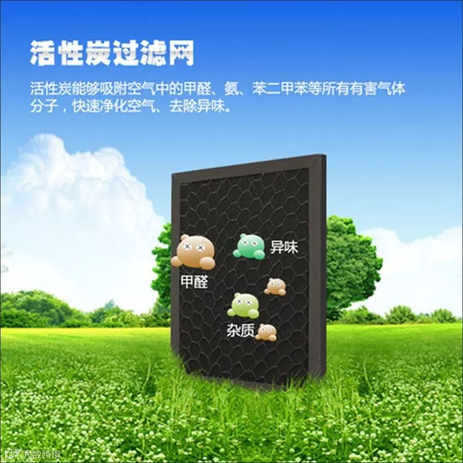 净化原理:活性炭多孔结构,比表面积大,能吸附小颗粒物质。