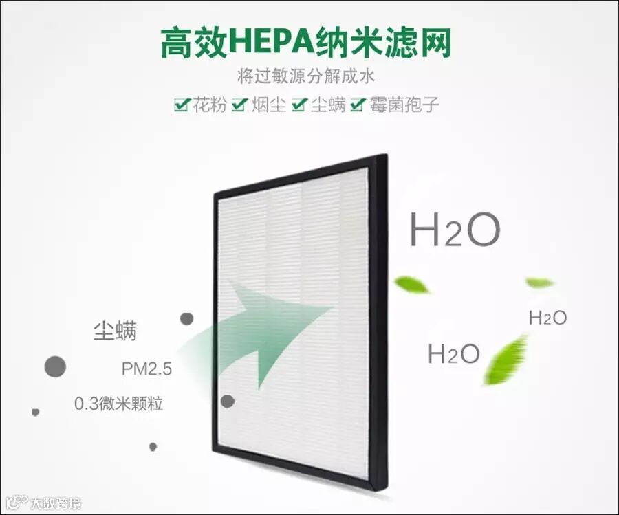 HEPA是一种国际公认最好的高效滤材,HEPA过滤器由一叠连续前后折叠的亚玻璃纤维膜构成(空气净化机中常用PP,聚丙烯材质),形成波浪状垫片用来放置和支撑过滤界质。HEPA高效率微粒滤网的滤净效能与其表面积成正比。目前HEPA空气净化装置的HEPA高效率微粒滤网均是多层折叠,展开后面积比折叠时增加十几倍到几十倍,滤净效能十分出众。