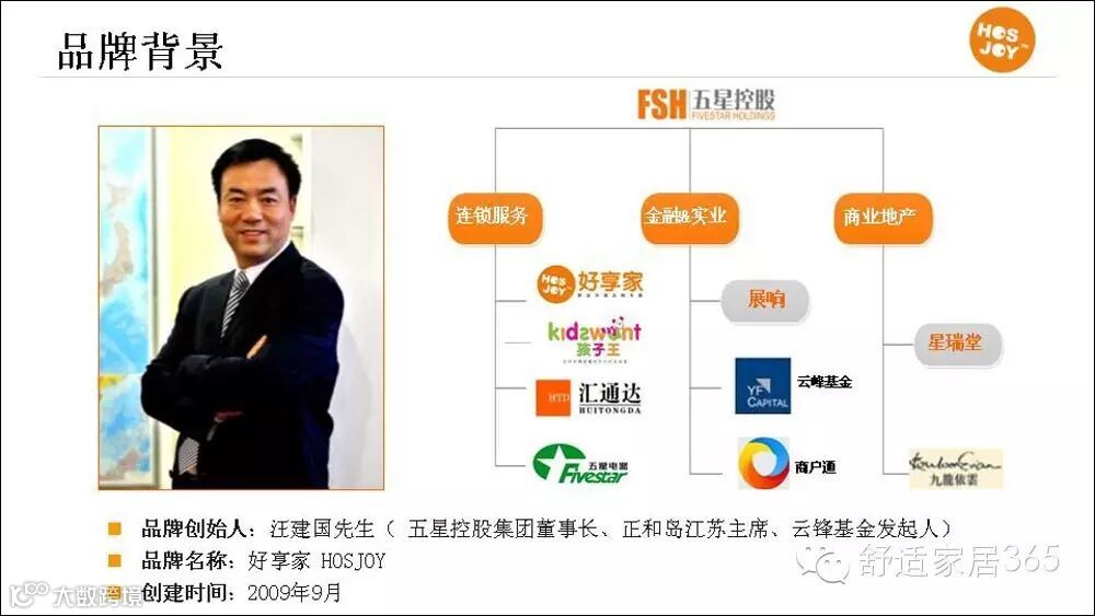 “好享家属于五星控股集团,五星控股集团是一个孵化器,专门培育新的商业品牌” ,据陶永介绍,五星控股旗下四个品牌,好享家是其中之一。