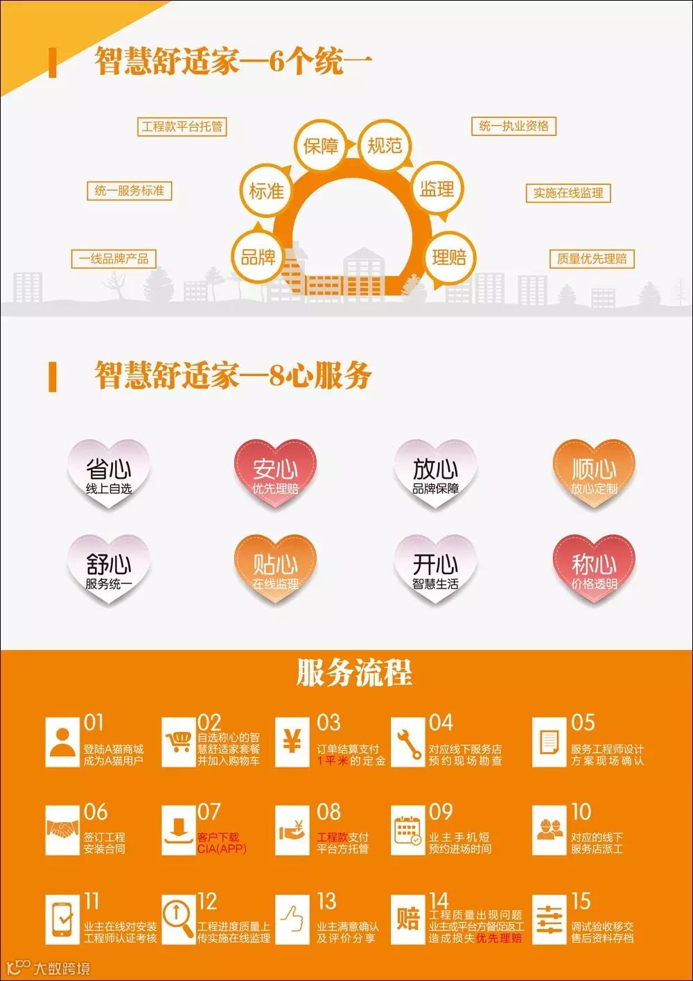 行业内首家线上线下(O2O)服务平台,行业内第三方设计、工程监理的服务平台,打造行业内最强、最大的B2B2C到C2B2B平台,将传统营销管理方法和互联网技术有机结合,实现全方位的销售、管理、互动、公开,使A猫商城成员共享融合——这就是A猫商城。