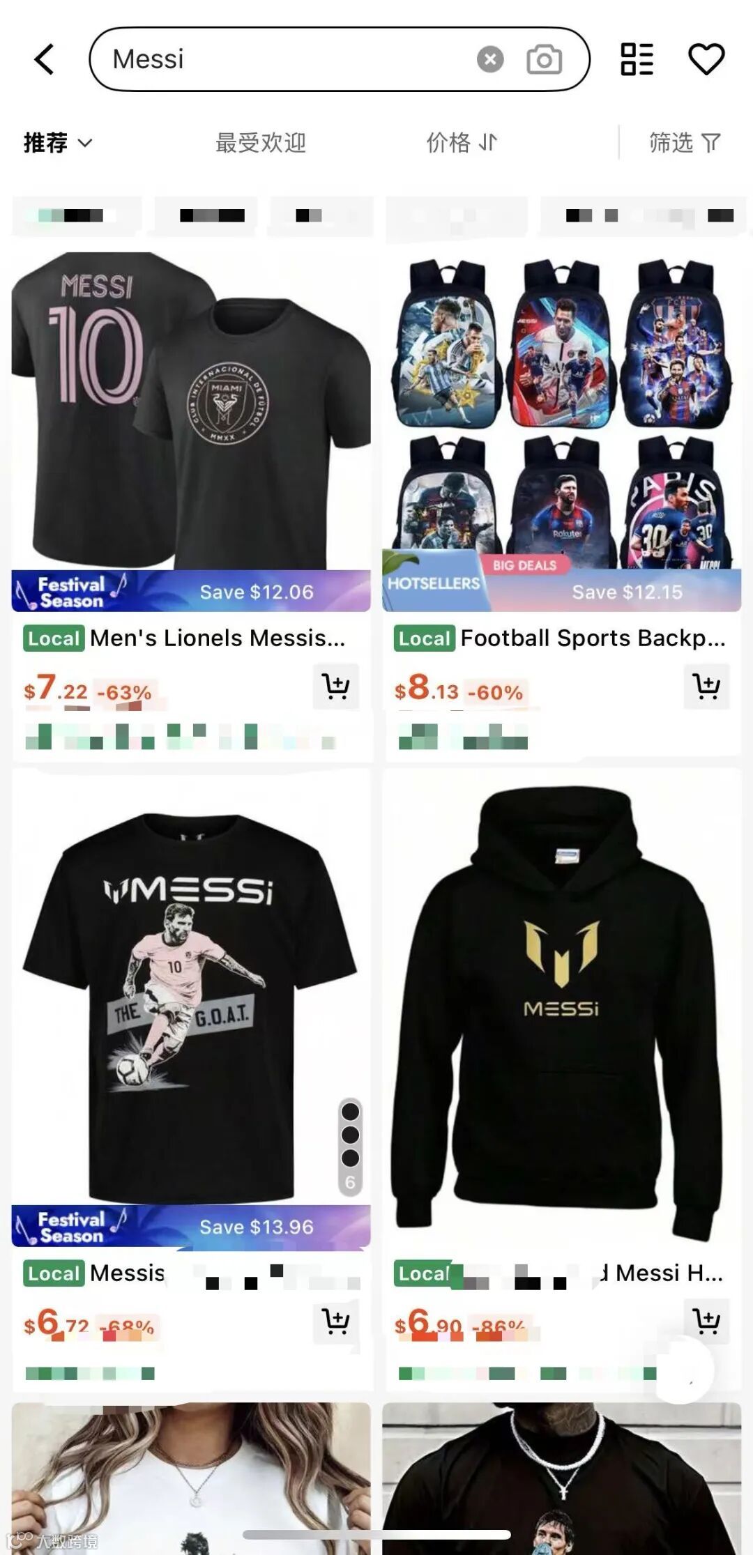 尽管案件已入司法程序,但在Temu和SHEIN的隐秘角落,印着梅西肖像的仿制品依然影影绰绰。这种“什么火卖什么”的野蛮逻辑,在过去或许能让你赚到第一桶金,大不了封号换皮。
