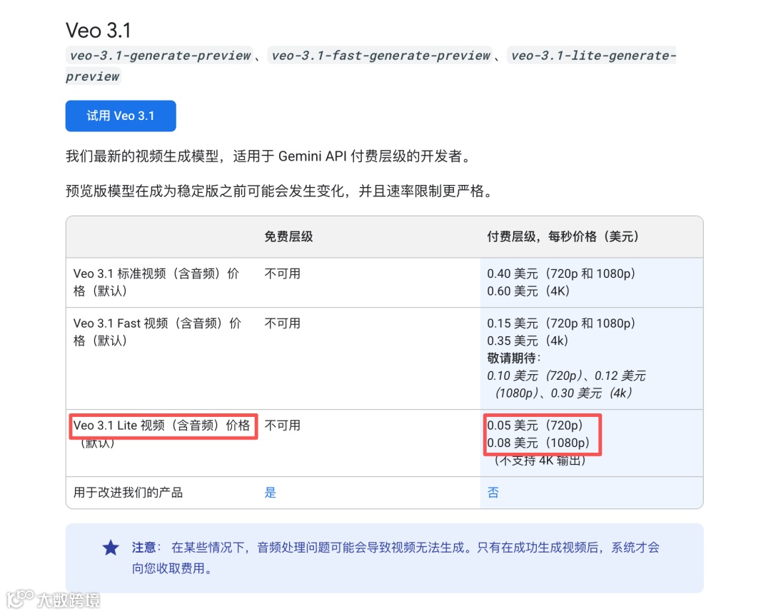 谷歌推出Veo 3.1 Lite,为Fast版本的半价以下