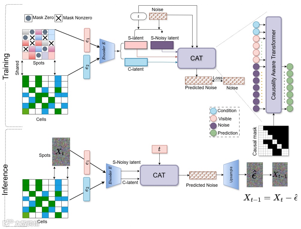 2. 创新地设计了因果感知注意力掩码,解决了高维连续基因数据缺乏空间依赖的建模难题。 -