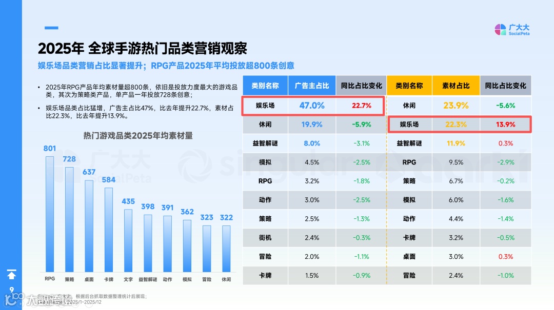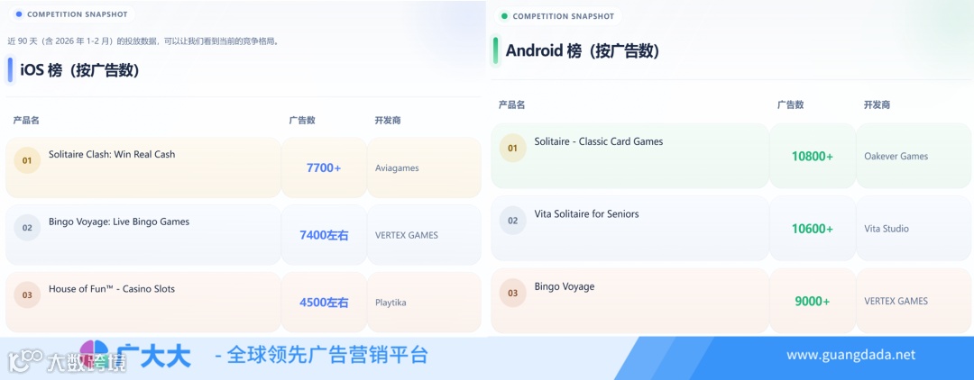 2026年Q1娱乐场投放榜,Solitaire品类领跑双榜