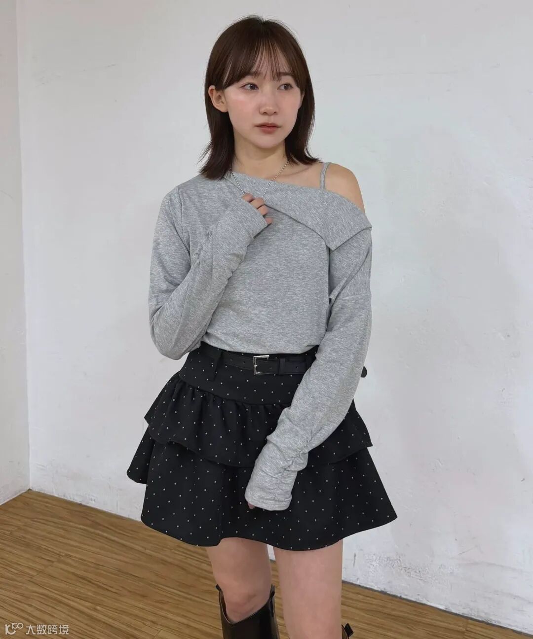 日系小红牌ml*ne露肩上衣长袖T恤