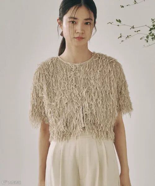 日系小红牌moi tytto蓬松流苏羽毛纱开衫