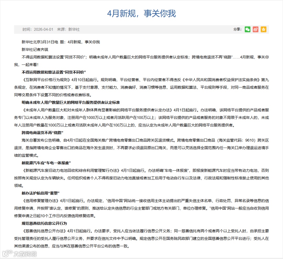 值得一提的是,今年2月份,财政部、海关总署、税务总局联合发布《关于跨境电子商务出口退运商品税收优惠政策的公告》,明确对于2026年1月1日至2027年12月31日期间,因滞销或退货原因在6个月内原状退运进境的跨境电商出口商品(不含食品),免征进口关税和进口环节增值税、消费税,并可退还已征收的出口关税。