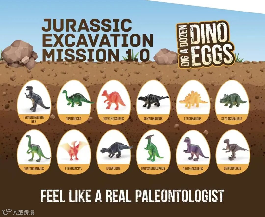 同商店还有另一款的恐龙彩蛋也有7000+的销量,和本款不同的是,恐龙彩蛋主打挖掘与科教体验。孩子们可以砸开蛋壳并用刷子刷干净恐龙模型,然后通过附赠的小卡片辨认品种,如同一场真实的科考。