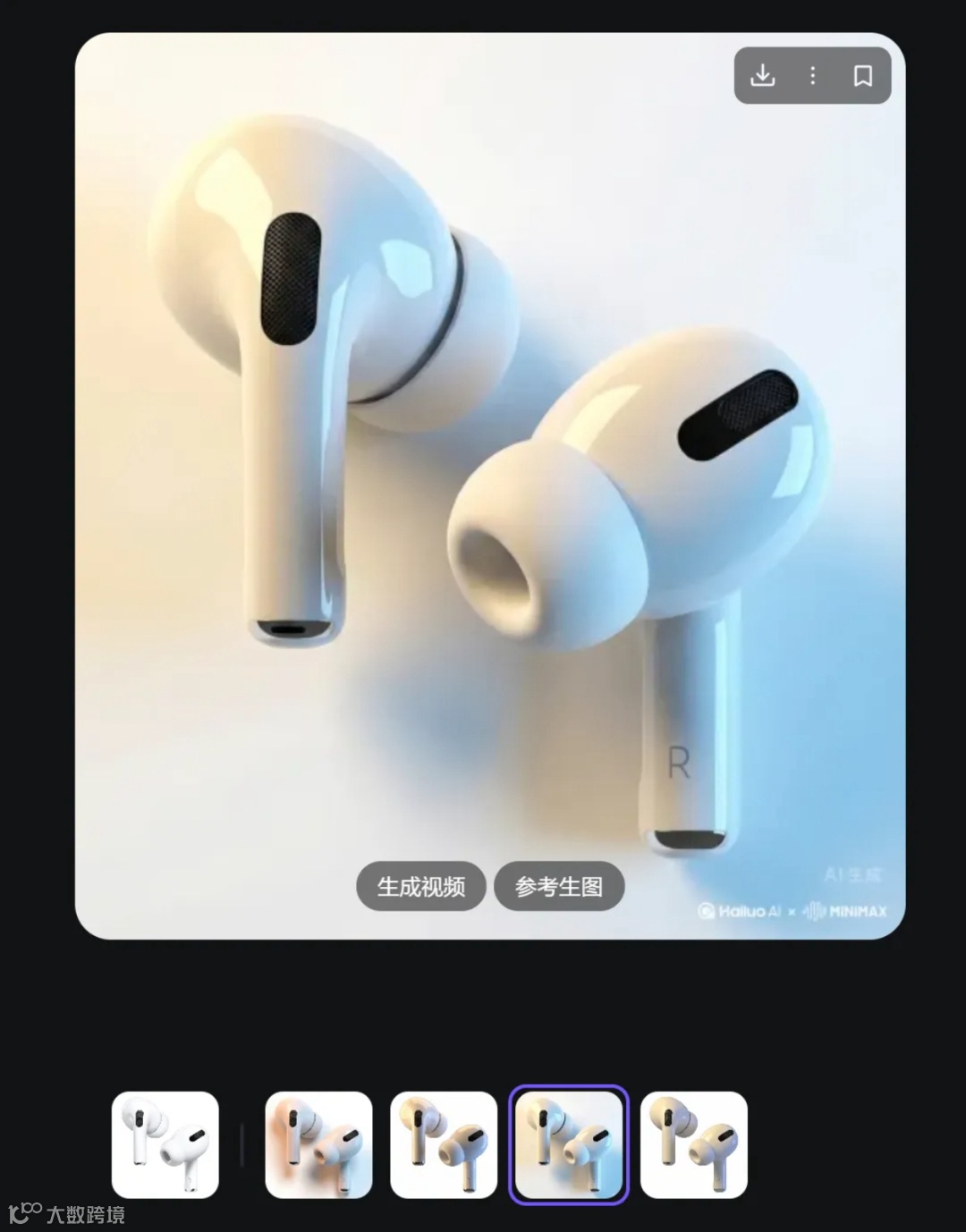 站酷讲师@杰克sean补充:当AI误将产品背景色纳入图像(如AirPods产生投影),切换白色摄影棚即可生成悬浮空间效果。