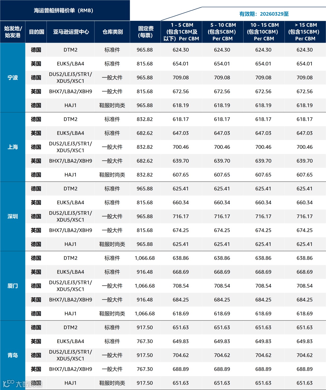 2) 费用包含:启运港至目的国亚马逊运营中心的跨境物流费用,明细可咨询客户经理;不含关税、保险费、商检费及海关查验等额外费用。