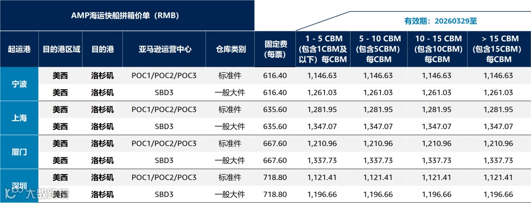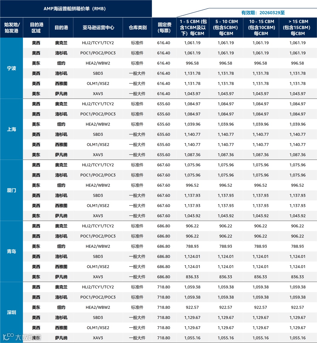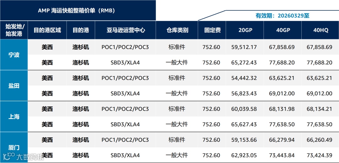 亚马逊优享入仓(AMP)公开价卡【一般海运】