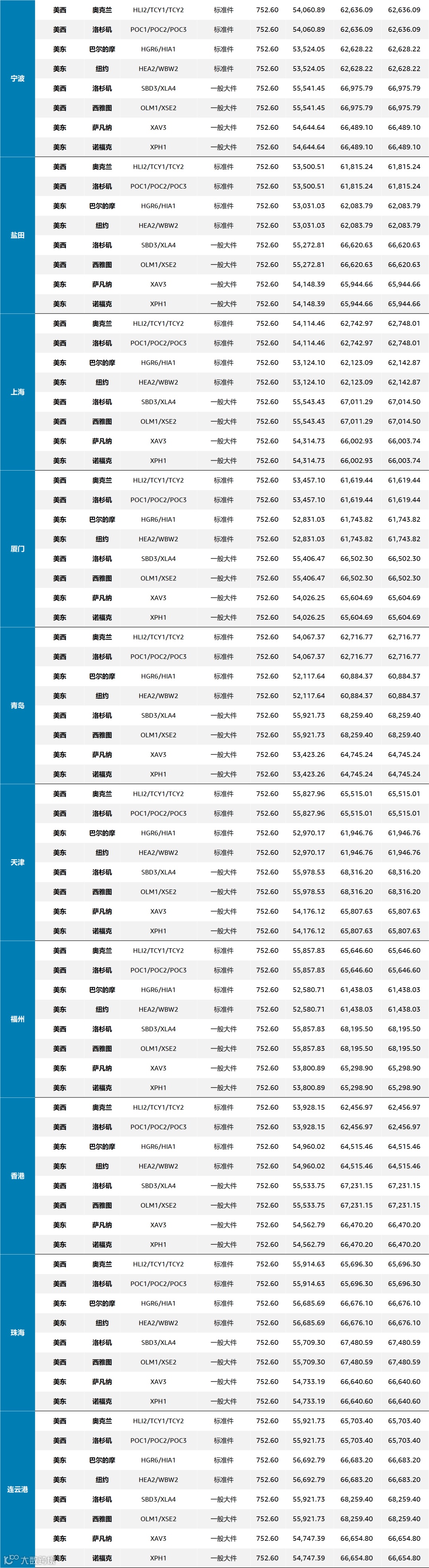 具体条款参照一般海运价卡说明。