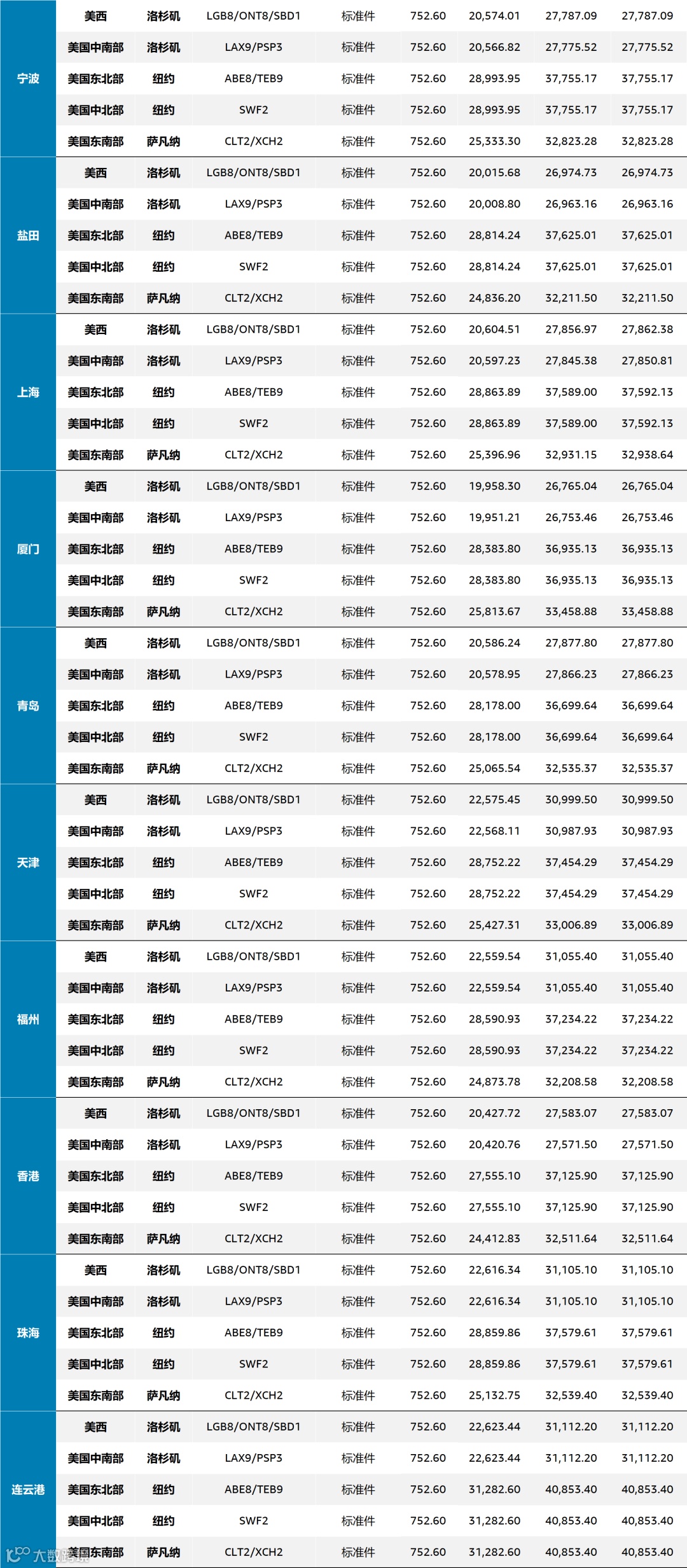 价卡条款参照一般海运价卡执行,具体适用条件以最新报价单为准。