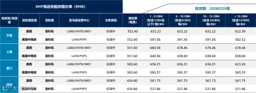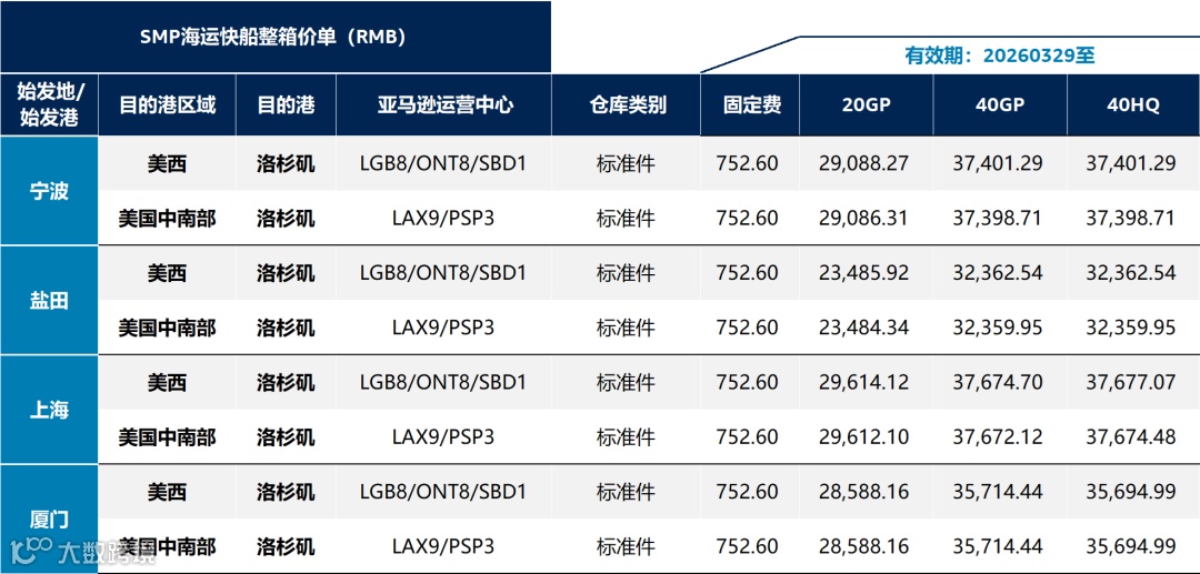 2) 报价含启运港至亚马逊运营中心的跨境物流费,费用明细以客户经理确认为准。
