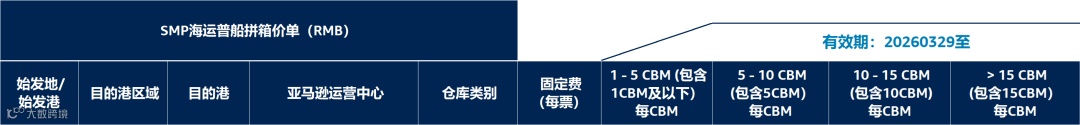 5) 拼箱价格按1立方米=1吨计费,超重部分按实际重量结算;最低计费标准为1立方米/1吨。英文版价卡请邮件联系contact-us-agl-cn-sales@amazon.com获取。