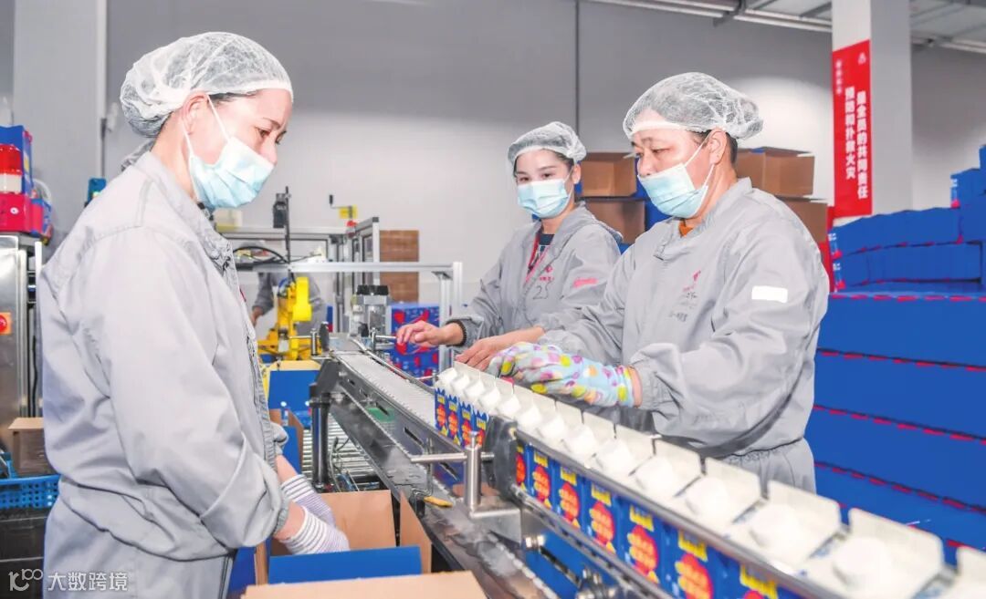 雨帆乳业工作人员正在打包乳制品。
