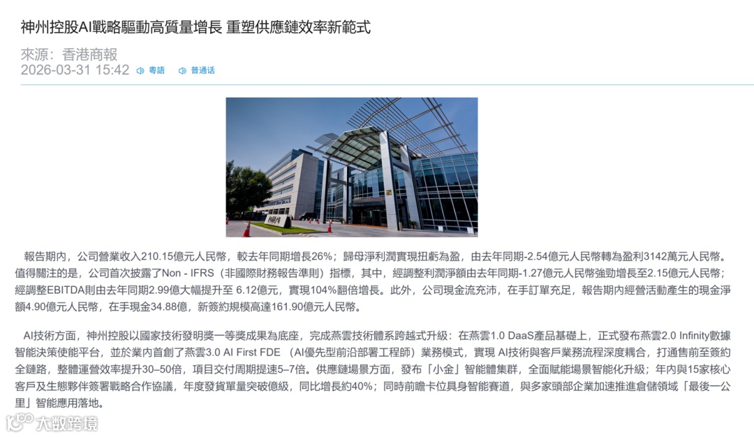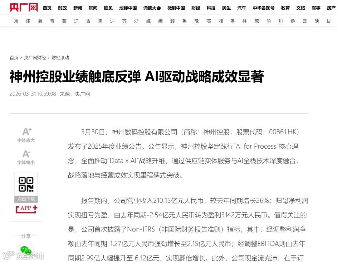 神州控股2025年业绩报告:AI+供应链战略驱动扭亏为盈