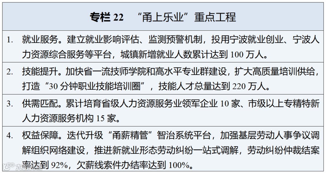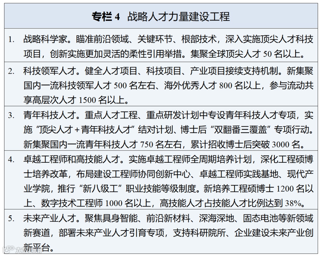 • 广泛集聚优秀人才:实施"甬江人才工程",打造"奔甬而来"引才品牌