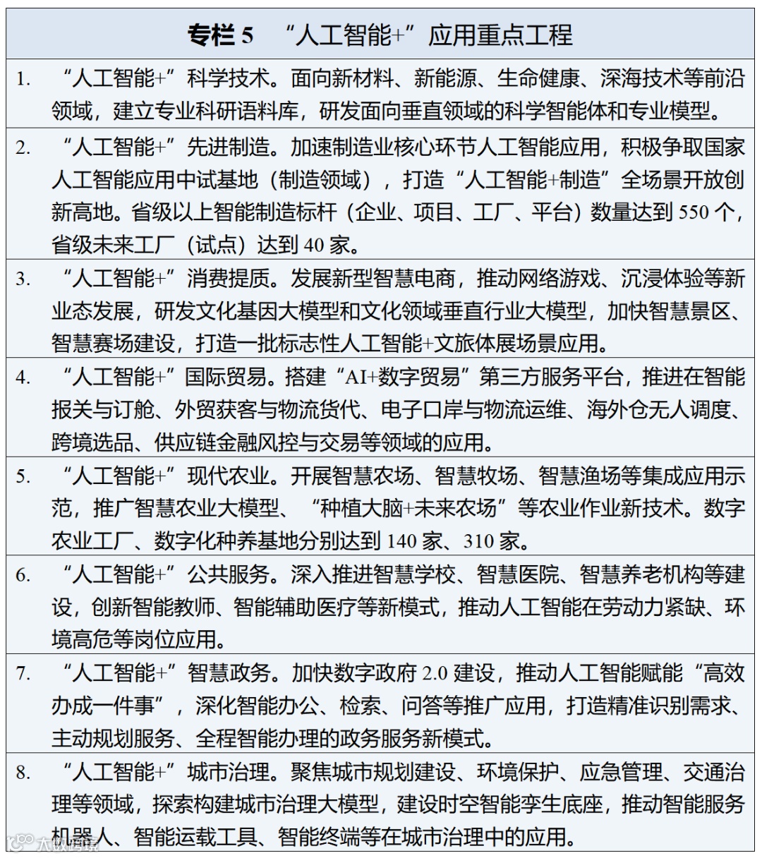 • 应用场景建设:推动人工智能在制造、港口、医疗等重点领域深度应用,新一代智能终端应用普及率达90%以上