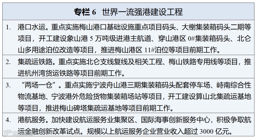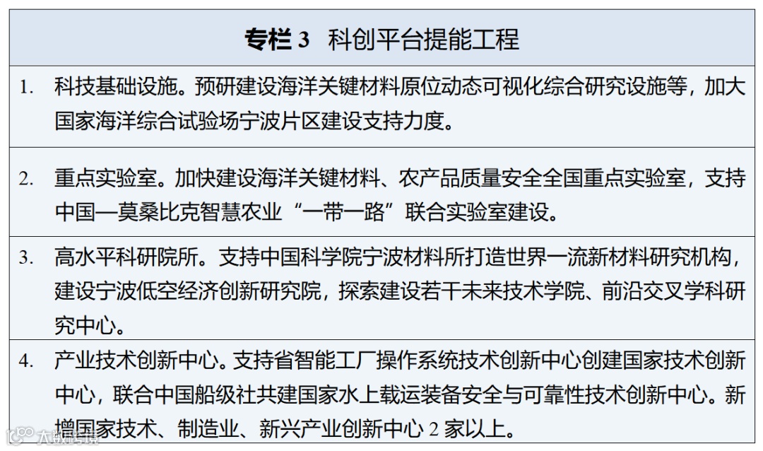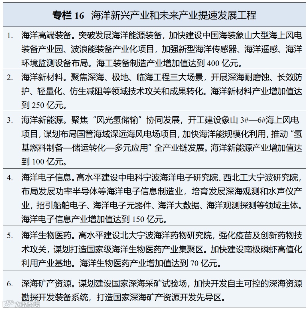 • 科技创新能力:支持建设国家海洋综合试验场宁波片区,提升海洋关键共性技术攻关能力
