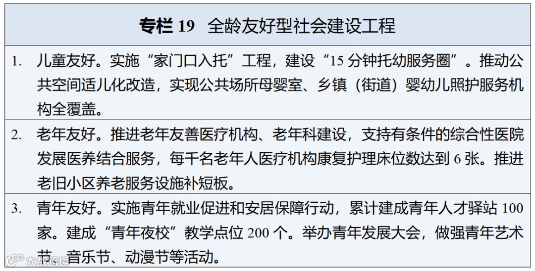 • 养老服务:发展普惠支持型养老,养老机构护理型床位占比达75%以上