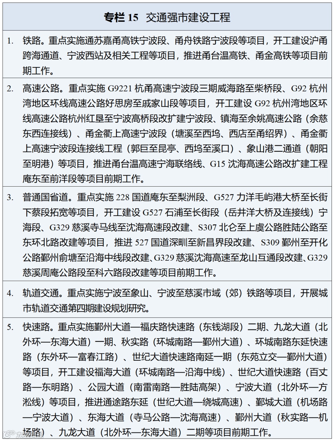 • 交通网络:加快建设对外重大通道,打造省域和沪甬1小时交通圈,轨道交通运营里程超420公里