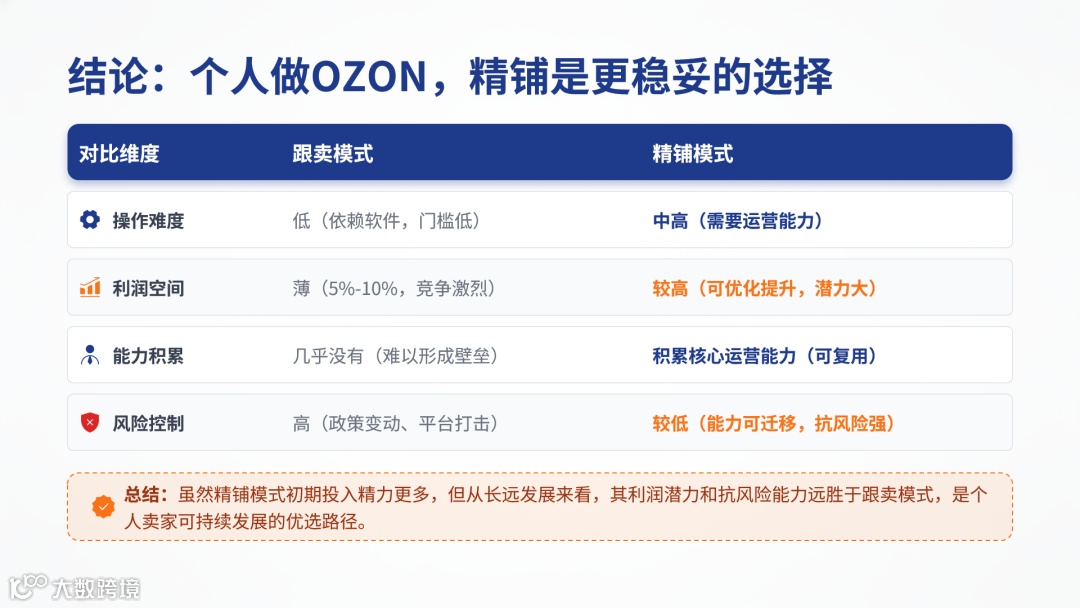 精铺则聚焦选品逻辑、广告投放及数据优化等核心能力训练。即便在OZON未能盈利,所获经验可迁移至其他平台,为个人卖家提供长期发展支撑。因此,精铺是更具可持续性的选择。