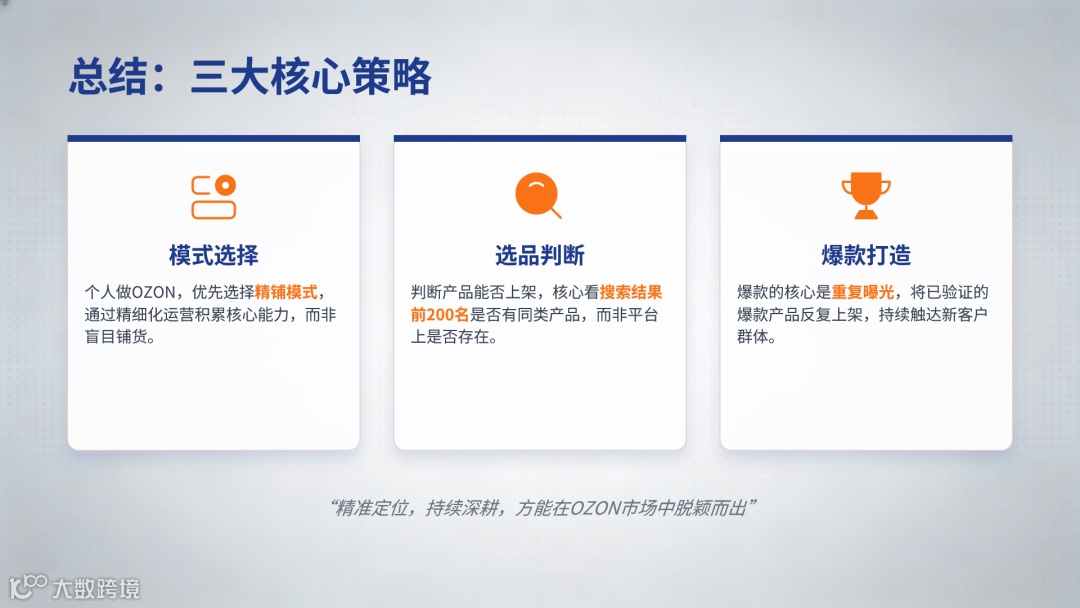总结:个人卖家宜选择精铺模式积累核心能力;产品上架需以搜索前200名为判断基准;爆款增长应通过反复上架经验证产品实现。方向明确后,持续优化运营数据,跨境增长路径更为清晰高效。