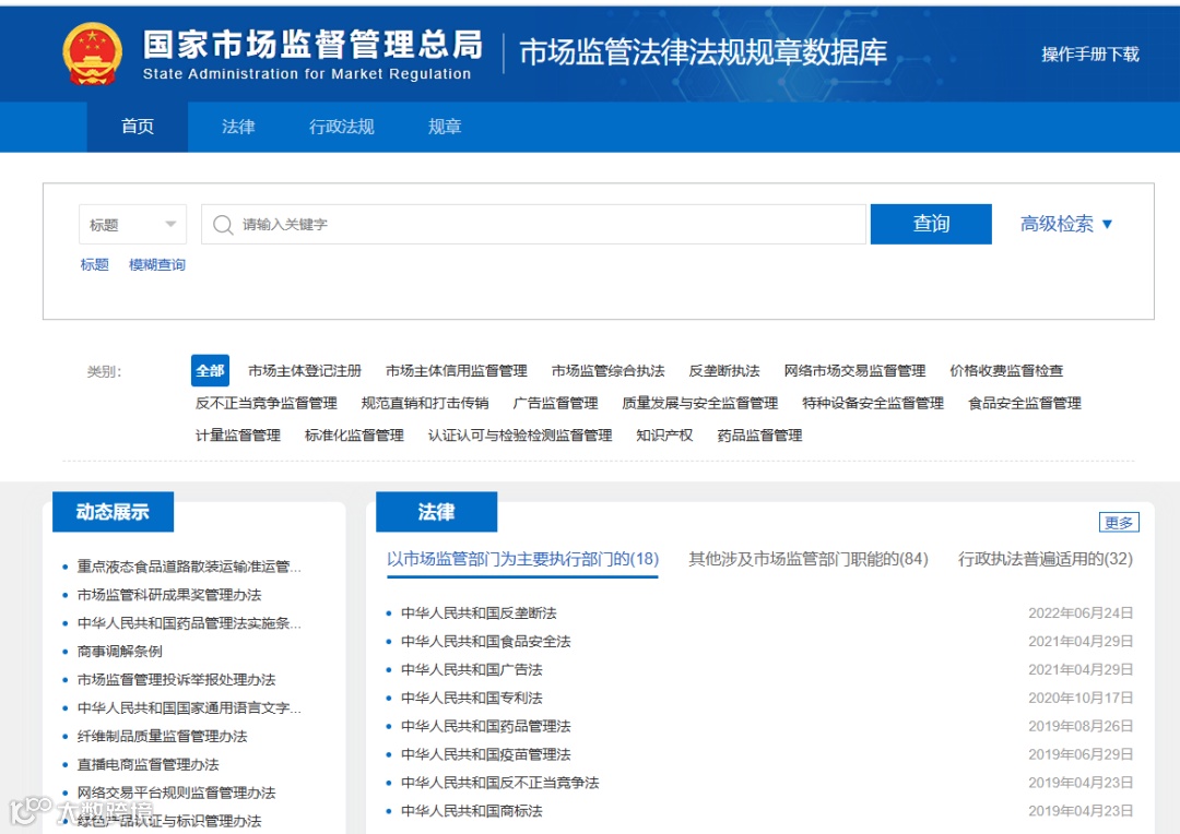 市场监管法律法规规章数据库