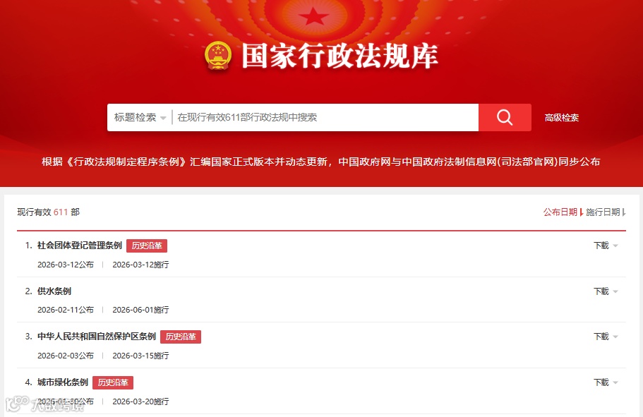 中华人民共和国司法部行政法规库查询