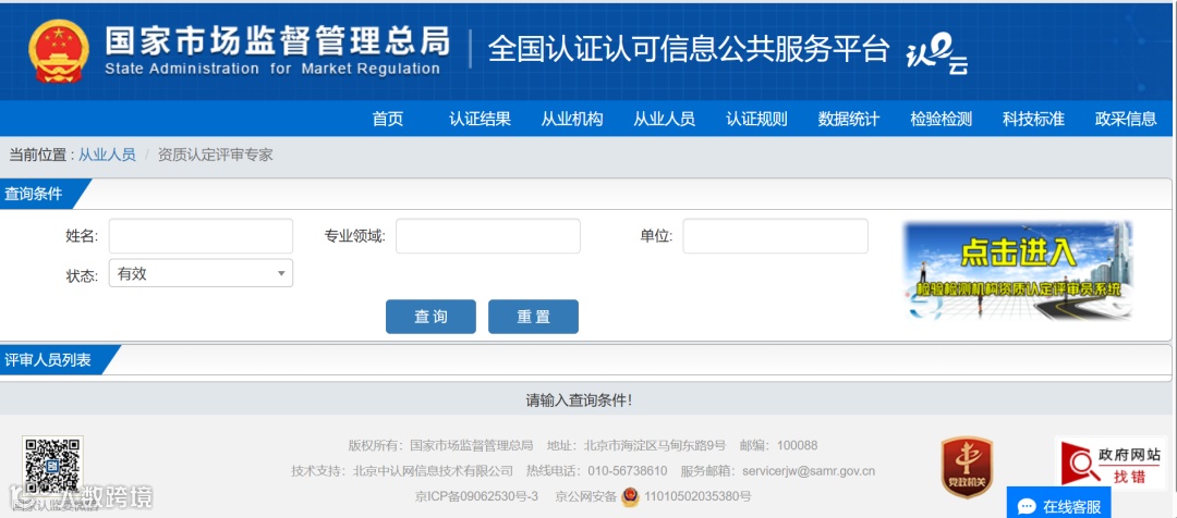 国家级资质认定评审员名单查询系统