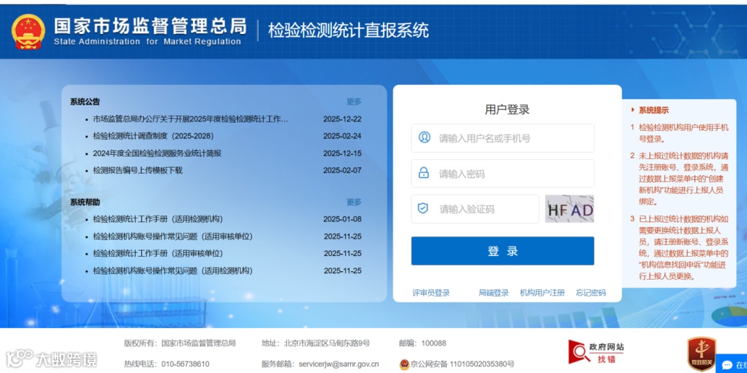 检验检测统计直报系统