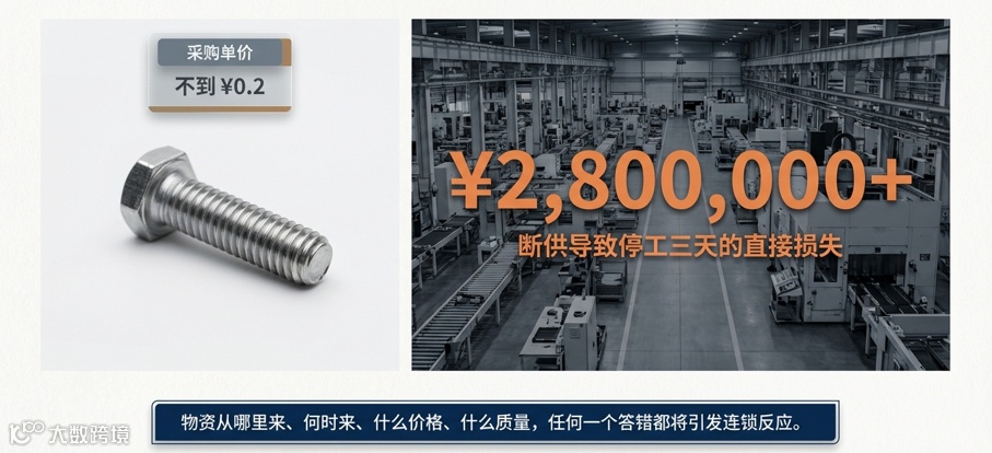 采购常被误解为简单比价购物,然而决策失误可致企业损失数百万元。例如某电子制造企业因单价不足两毛钱的螺丝钉断供停工三天,直接损失超百万元,突显其作为供应链生命线的核心价值。货物来源、交付时间、价格及质量的精准把控,直接关系供应保障、成本控制与风险防范。