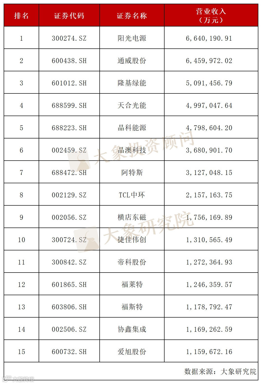 2025年前三季度营收高度集中,阳光电源、通威股份、隆基绿能稳居前三,规模均超500亿元。阳光电源以664.02亿元登顶,依托"光伏逆变器+储能+系统"协同布局彰显成长性。