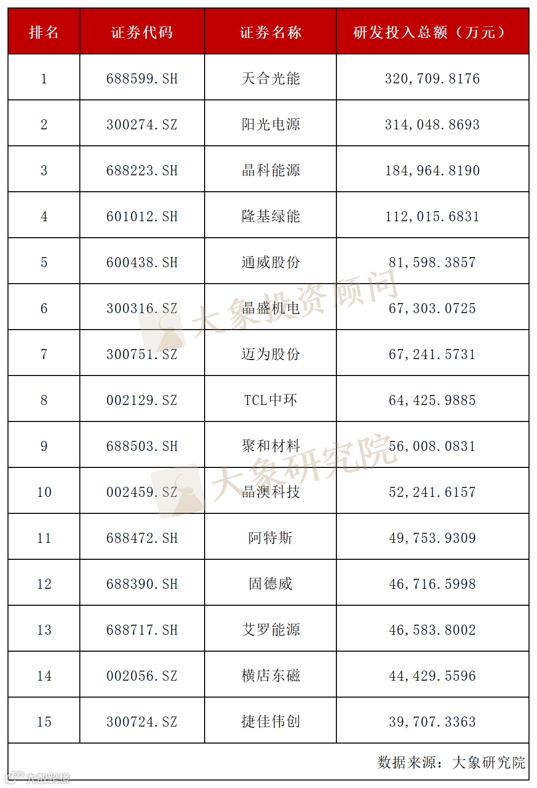 2025年前三季度中国光伏设备行业研发投入榜单(TOP5)