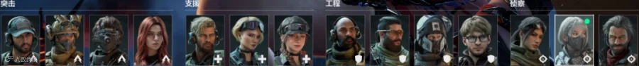 首先,角色分为四个种类,突击、支援、工程和侦察,每个技能与其角色定位相关。