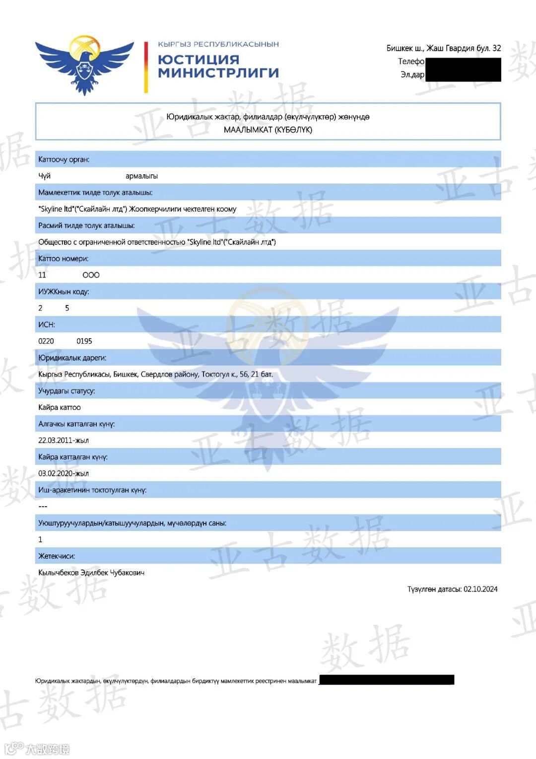 在全球化的今天,与海外企业合作已经成为许多中国公司拓展市场、寻找新机遇的重要途径。然而,在开展国际合作之前,深入了解合作伙伴的背景和信誉至关重要。对于那些正考虑与吉尔吉斯斯坦(Kyrgyzstan)的企业建立联系的中国企业来说,获取详尽准确的企业信息是做出明智决策的第一步。通过我们的专业境外信用服务,您能够轻松获得一份官方出具的吉尔吉斯斯坦公司档案——商业登记册(Commercial Register),这份文件不仅涵盖了该公司的基本信息,还提供了诸如外资参股情况(Information on Foreign Participation)、税务识别号TIN(Taxpayer Identification Number)等关键数据,帮助您全面掌握目标公司的现状,确保业务的安全与顺利进行。接下来,让我们一同探索查询吉尔吉斯斯坦公司时所能获取的具体信息及其价值所在。