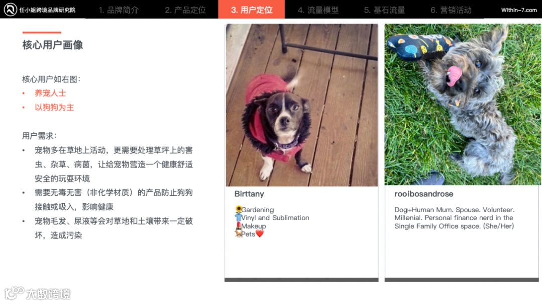 我们来反推一下用户的身份,这些养宠人士为什么需要这个产品?为了同时兼顾爱宠健康和草坪护理,并且有草坪的人一定住 House(大独栋)里。