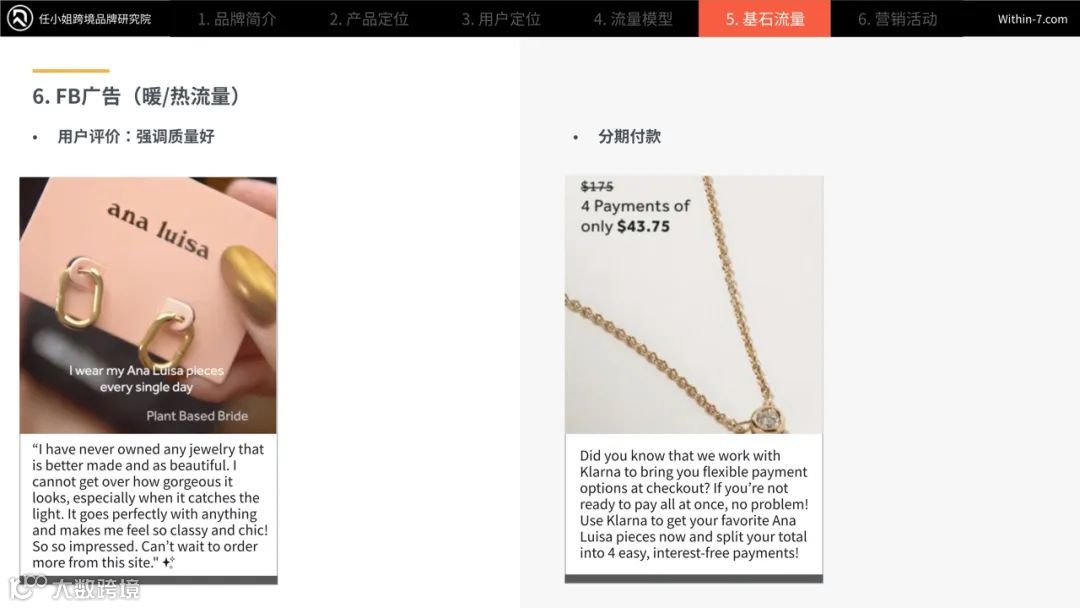 接下来我们介绍FB广告第二种打法:精准追单法。我们先来看一个品牌案例:Ana Luisa。
