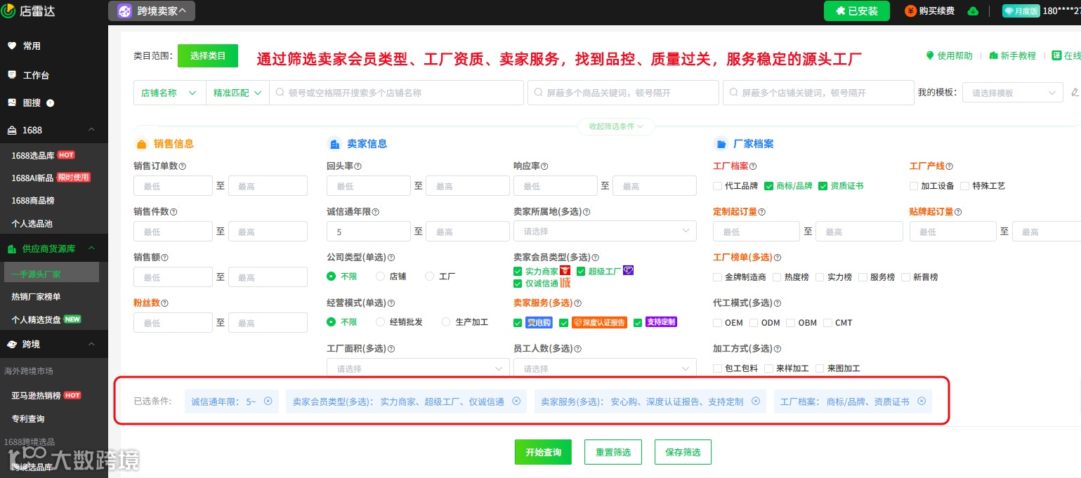 卖家可重新涉足这些高客单价、高复购率但退货率较高的品类。选品重点应从“规避退货”转向“通过优化尺码表、强化视频展示来降低误购率”,同时,可通过店雷达选品工具,通过筛选实力卖家、超级工厂,拥有诚信通、深度认证报告、资质证书的靠谱供应商,从源头把握品控,减少因质量问题导致的退货,进一步降低运营成本。