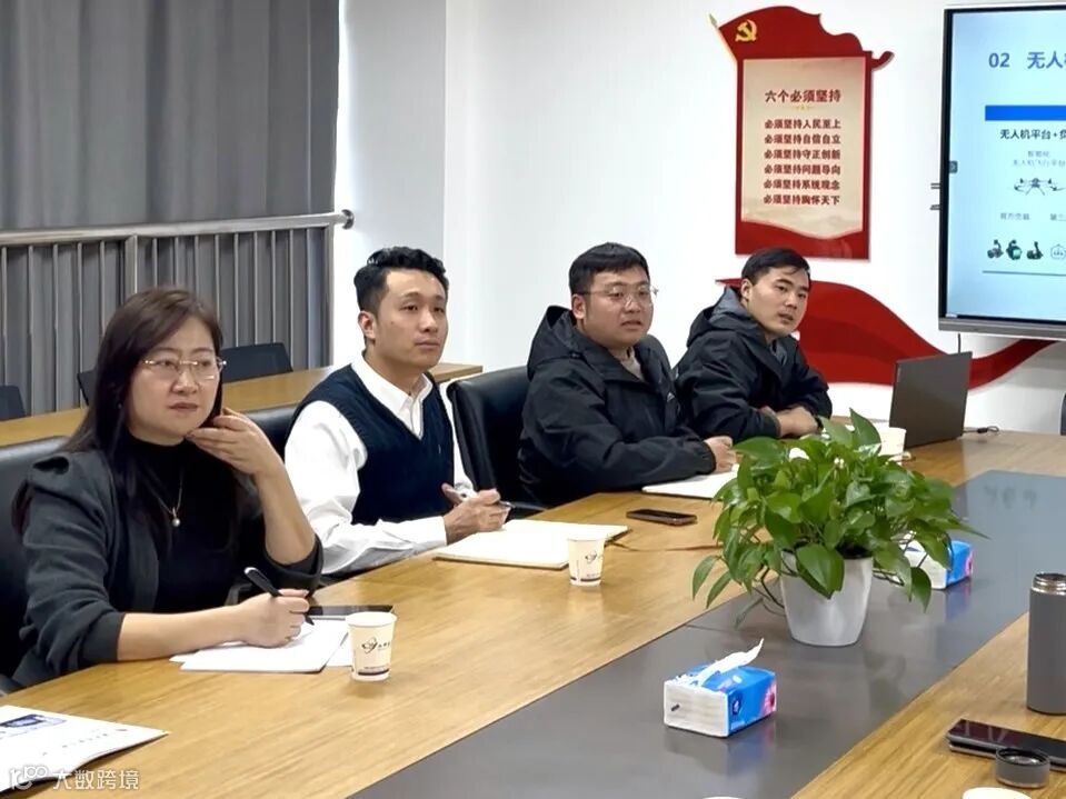随后,交流会议召开。七曜航空技术部赵义首先对大疆无人机行业应用前景进行细致讲解,涉及前景分析、解决方案、场景案例三个方面。七曜航空技术部潘翔结合淮南各区域实地巡检和成功项目案例进行补充,并对来宾的提问进行耐心解答。