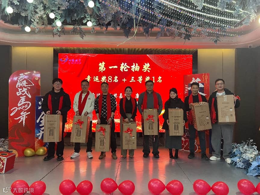 抽奖环节是晚宴的重头戏。从第一轮到第五轮,幸运奖、三等奖、二等奖、一等奖依次揭晓,每轮均由嘉宾亲手抽取并颁奖。