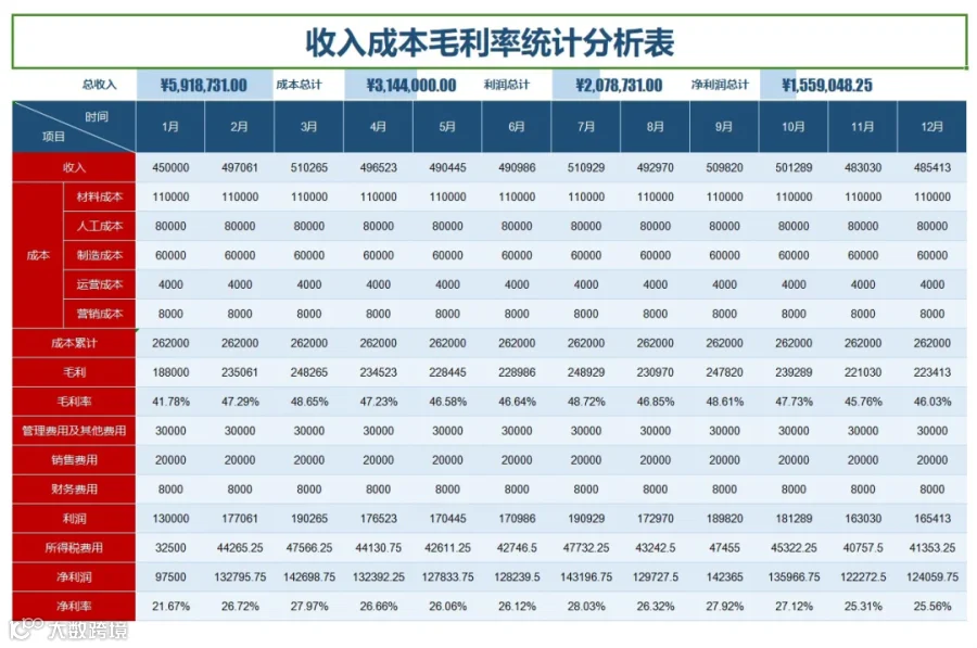 为便于实际应用,本文提供一套完整的毛利率分析模板,支持按月度、季度对多品类、多渠道的毛利情况进行动态跟踪。通过数据可视化图表清晰呈现趋势变化,助力企业及时调整经营策略,优化资源配置。