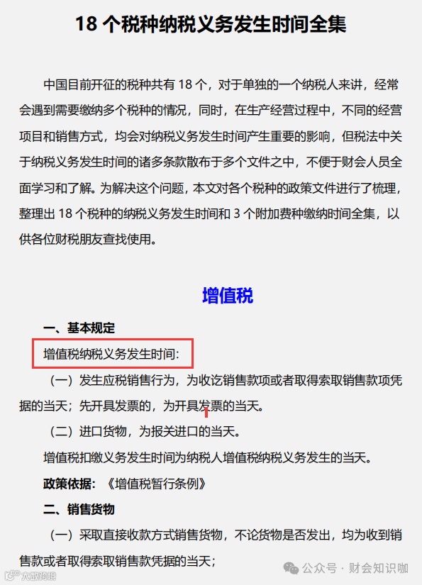 18个税种纳税义务发生时间全集